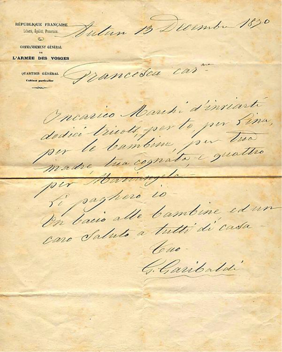 Lui ugualmente a suo agio se entrambi i fronti: tra la mura domestiche (padre e marito dolce, protettivo, sensibile) e in guerra (generale, condottiero in lotta per liberare l'Italia e condurla all'unità) e forse anche per questo chiamato "Eroe dei Due Mondi"